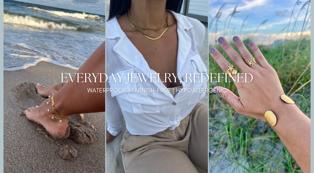Saint Jewelry offers affordable luxury that’s long-lasting, tarnish-proof, waterproof, and hypoallergenic— designed for everyday wear without compromise. Our pieces are made for you to swim, shower, and sweat in — all without ever worrying about the color fading.
